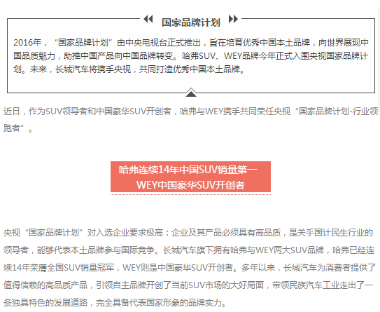 重磅!哈弗與WEY攜手入圍央視國(guó)家品牌計(jì)劃